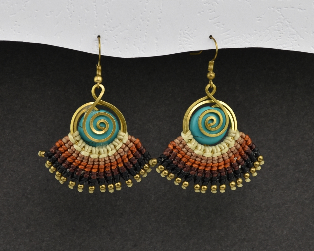 Ručně vyrobené drhané náušnice z voskovaného provázku, na kovovém základu, dozdobené drobnými preličkami a modrým Tyrkenitem.Každý pár těchto naušnic je jedinečný originál.Materiál: kov, voskovaná bavlnka, minerálRozměry: 4 x 4 cm prečítať celé
