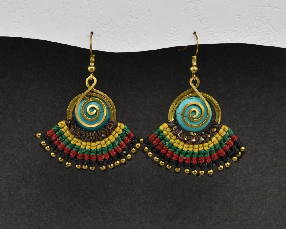 Ručně vyrobené drhané náušnice z voskovaného provázku, na kovovém základu, dozdobené drobnými preličkami a modrým Tyrkenitem.Každý pár těchto naušnic je jedinečný originál.Materiál: kov, voskovaná bavlnka, minerálRozměry: 4 x 4 cm prečítať celé