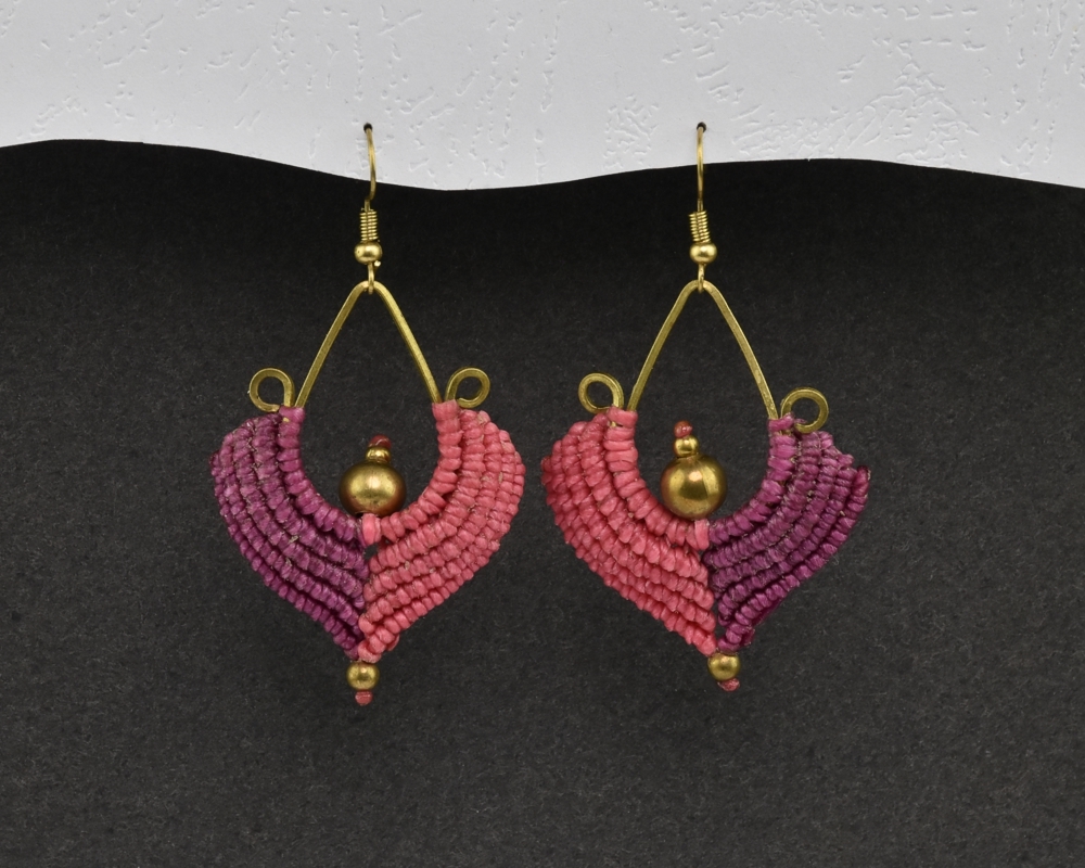 Ručně vyrobené drhané náušnice z voskovaného provázku, na kovovém základu, dozdobené drobnými preličkami.Každý pár těchto naušnic je jedinečný originál.Materiál: kov, voskovaná bavlnkaRozměry: 5 x 3,5 cm prečítať celé