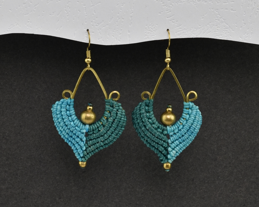 Ručně vyrobené drhané náušnice z voskovaného provázku, na kovovém základu, dozdobené drobnými preličkami.Každý pár těchto naušnic je jedinečný originál.Materiál: kov, voskovaná bavlnkaRozměry: 5 x 3,5 cm prečítať celé