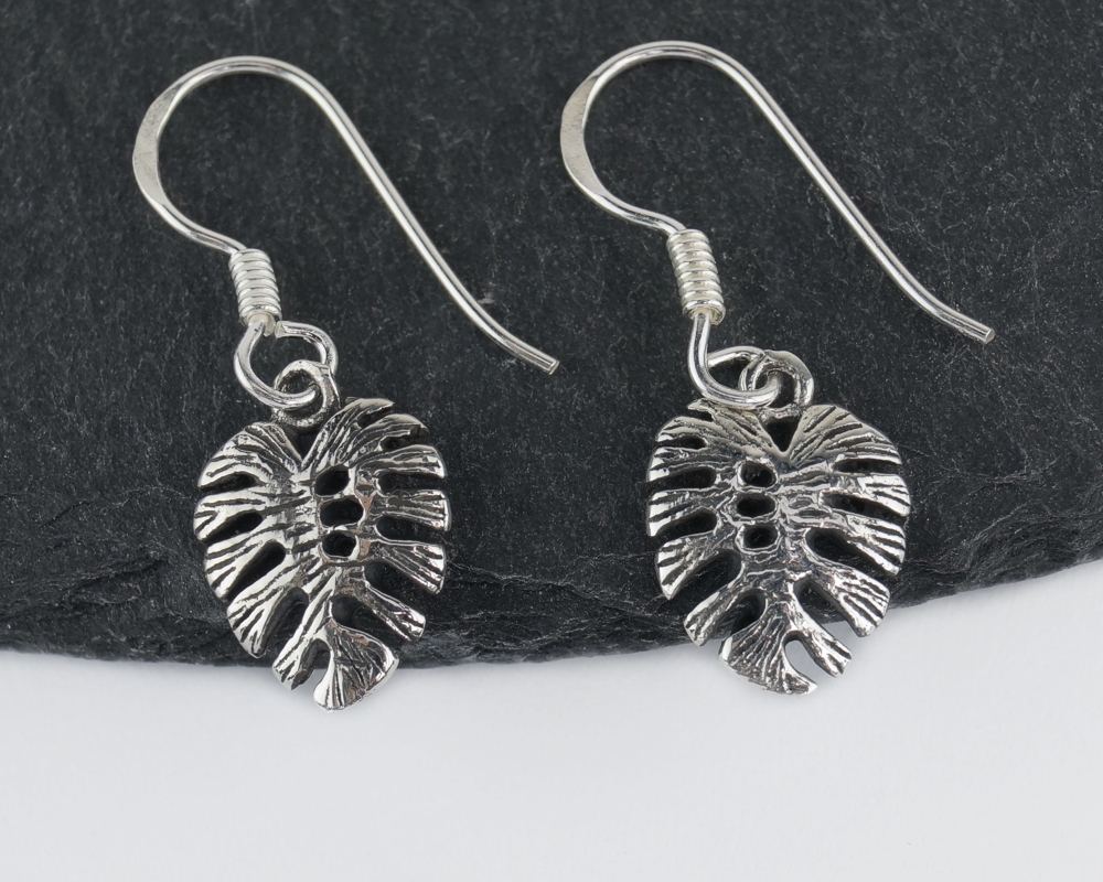 Stříbrné náušnice s háčkem - Monstera. Náušnice jsou označeny puncem ryzosti. Ryzost: Ag 925/1000 Délka: 13 mm (měřeno od háčku)Šířka: 9 mm Hmotnost: cca 0,85 g/kus Upozornění: všechny stříbrné šperky lze zakoupit pouze přes e-shop. Jsme registrováni u puncovního úřadu. Veškeré informace naleznete zde.
