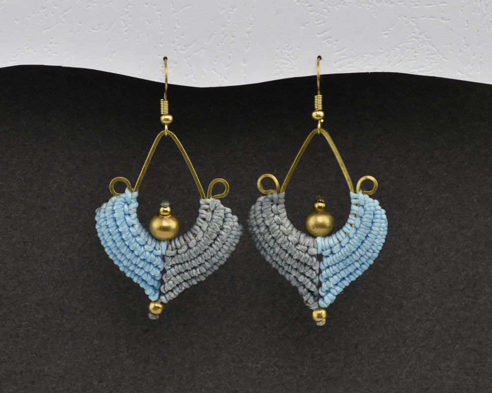 Ručně vyrobené drhané náušnice z voskovaného provázku, na kovovém základu, dozdobené drobnými preličkami.Každý pár těchto naušnic je jedinečný originál.Materiál: kov, voskovaná bavlnkaRozměry: 5 x 3,5 cm prečítať celé
