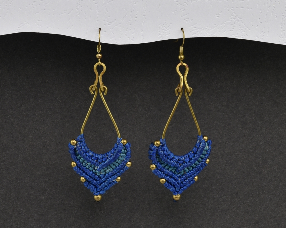 Ručně vyrobené drhané náušnice z voskovaného provázku, na kovovém základu, dozdobené drobnými preličkami.Každý pár těchto naušnic je jedinečný originál.Materiál: kov, voskovaná bavlnkaRozměry: 6,5 x 3 cm prečítať celé