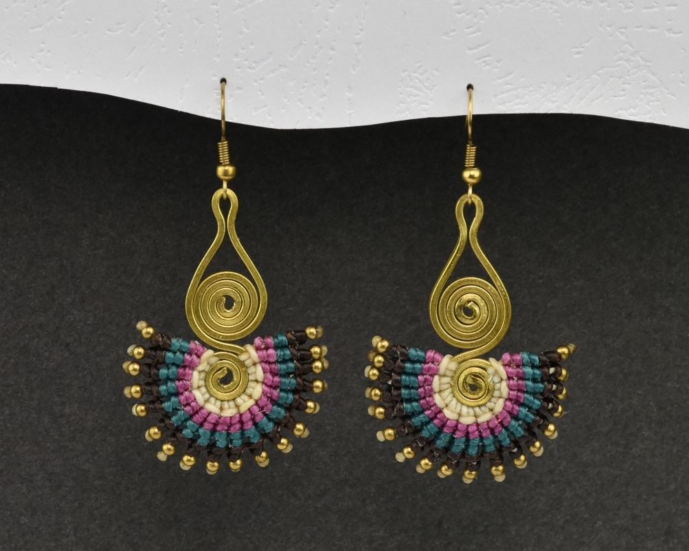 Ručně vyrobené drhané náušnice z voskovaného provázku, na kovovém základu, dozdobené drobnými preličkami rozzáří každou nositeku.Každý pár těchto naušnic je jedinečný originál.Materiál: kov, voskovaná bavlnkaRozměry: 4,5 x 3,5 cm prečítať celé