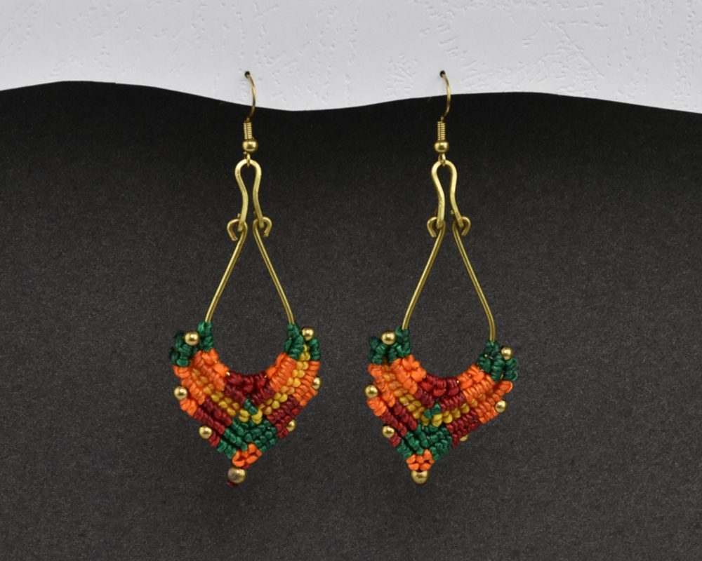 Ručně vyrobené drhané náušnice z voskovaného provázku, na kovovém základu, dozdobené drobnými preličkami.Každý pár těchto naušnic je jedinečný originál.Materiál: kov, voskovaná bavlnkaRozměry: 6,5 x 3 cm prečítať celé