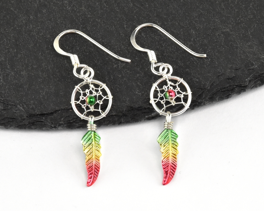 Stříbrné náušnice s háčkem - Rasta lapač snů. Náušnice jsou označeny puncem ryzosti. Ryzost: Ag 925/1000 Velikost: 25 x 8 mm (lapač)Hmotnost: 0,4 g/kus Upozornění: všechny stříbrné šperky lze zakoupit pouze přes e-shop. Jsme registrováni u puncovního úřadu. Veškeré informace naleznete zde.