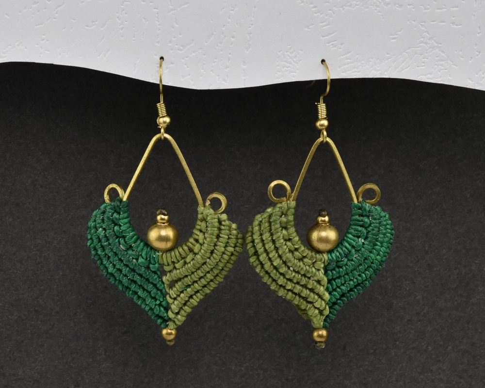 Ručně vyrobené drhané náušnice z voskovaného provázku, na kovovém základu, dozdobené drobnými preličkami.Každý pár těchto naušnic je jedinečný originál.Materiál: kov, voskovaná bavlnkaRozměry: 5 x 3,5 cm prečítať celé