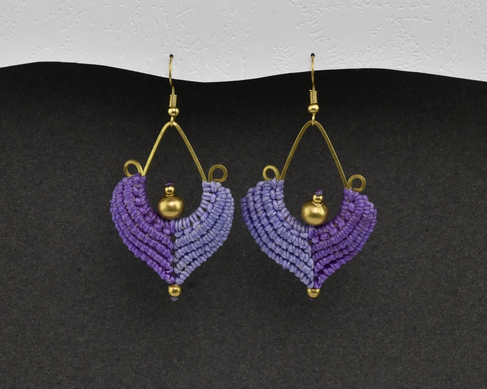 Ručně vyrobené drhané náušnice z voskovaného provázku, na kovovém základu, dozdobené drobnými preličkami.Každý pár těchto naušnic je jedinečný originál.Materiál: kov, voskovaná bavlnkaRozměry: 5 x 3,5 cm prečítať celé