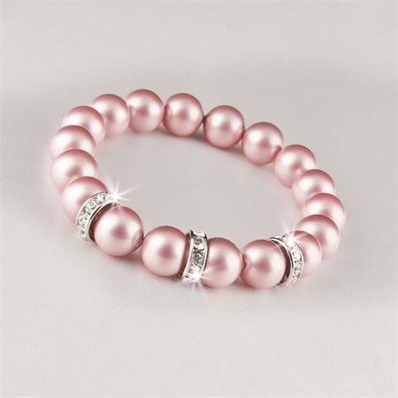 Modní perlový náramek v růžové barvě a 3 rondely s krystaly Swarovski. Perle jsou navlečeny na elastickou strunu. Poskytují tak jemný vzhled a skvěle ladí ke každému oblečení....