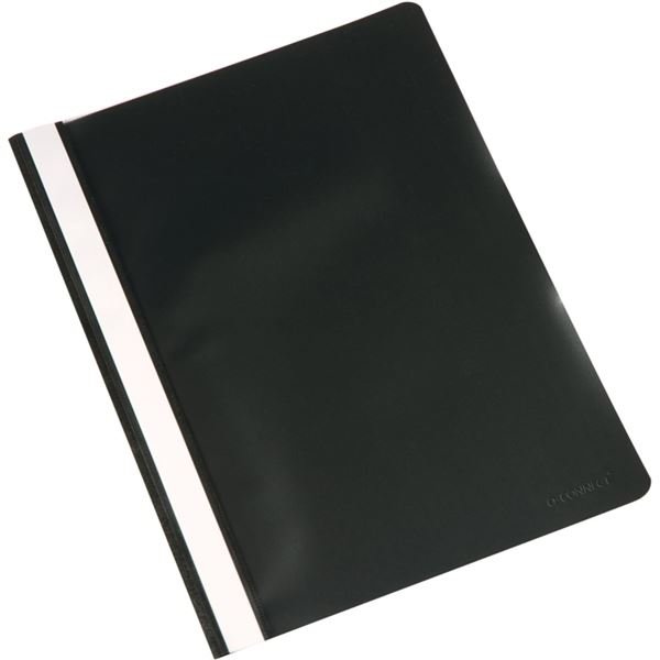 Rychlovazač, materiál PP, přední strana transparentní, zadní strana barevná, 2 stranný popisovatelný proužek Balení 50 ks* formát-A4, kapacita-až 2 cm, barva-černá prečítať celé