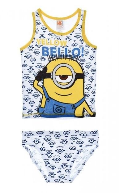 Souprava tílka a slipů Mimoni. V provedení bílá - žlutý lem. 100 % bavlna. Oficiální licence, Sun City, Francie. prečítať celé