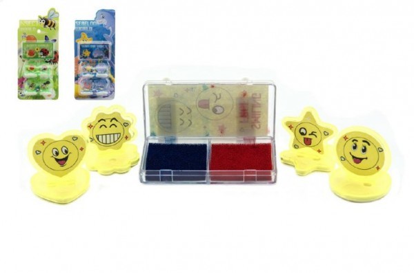 Razítka 4ks s poduškou plast 3cm asst mix druhů na kartě 24ks v boxu
