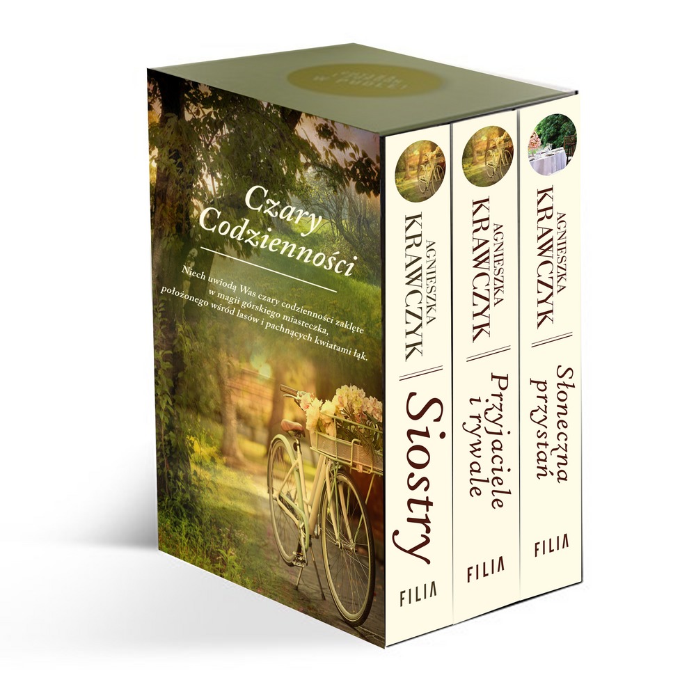 Czary codzienności, bestsellerowa saga Agnieszki Krawczyk! Trzy tomy: Siostry, Przyjaciele i rywale i Słoneczna przystań w jednym pakiecie. Niech uwiodą was czary codzienności zaklęte w magii górskiego miasteczka, położonego wśród lasów i pachnących kwiatami łąk. Piękna saga o małym, górskim miasteczku, jego mieszkańcach i marzeniach, które, jeśli bardzo tego chcemy, mogą się spełnić.