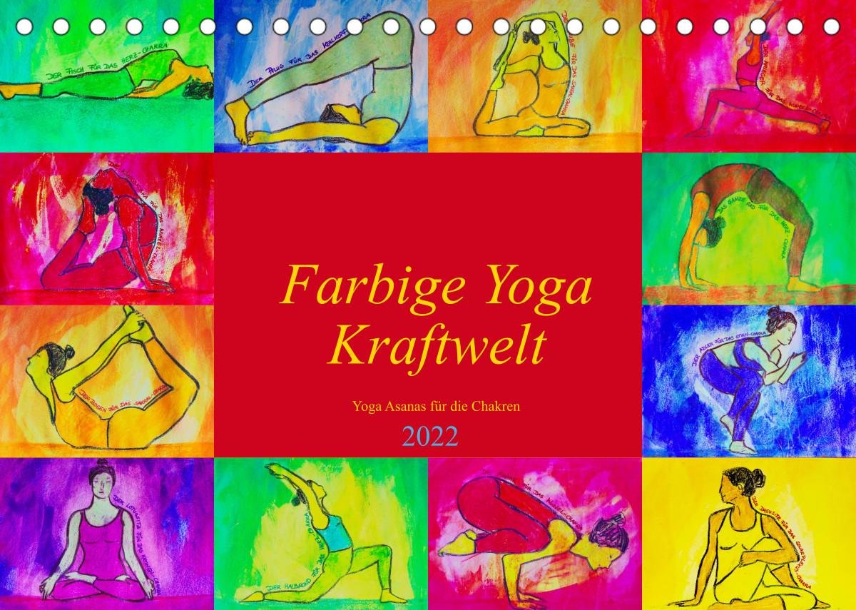 Farbige Yoga Kraftwelt - Yoga Asanas für die Chakren (Tischkalender 2022 DIN A5 quer) (německy)