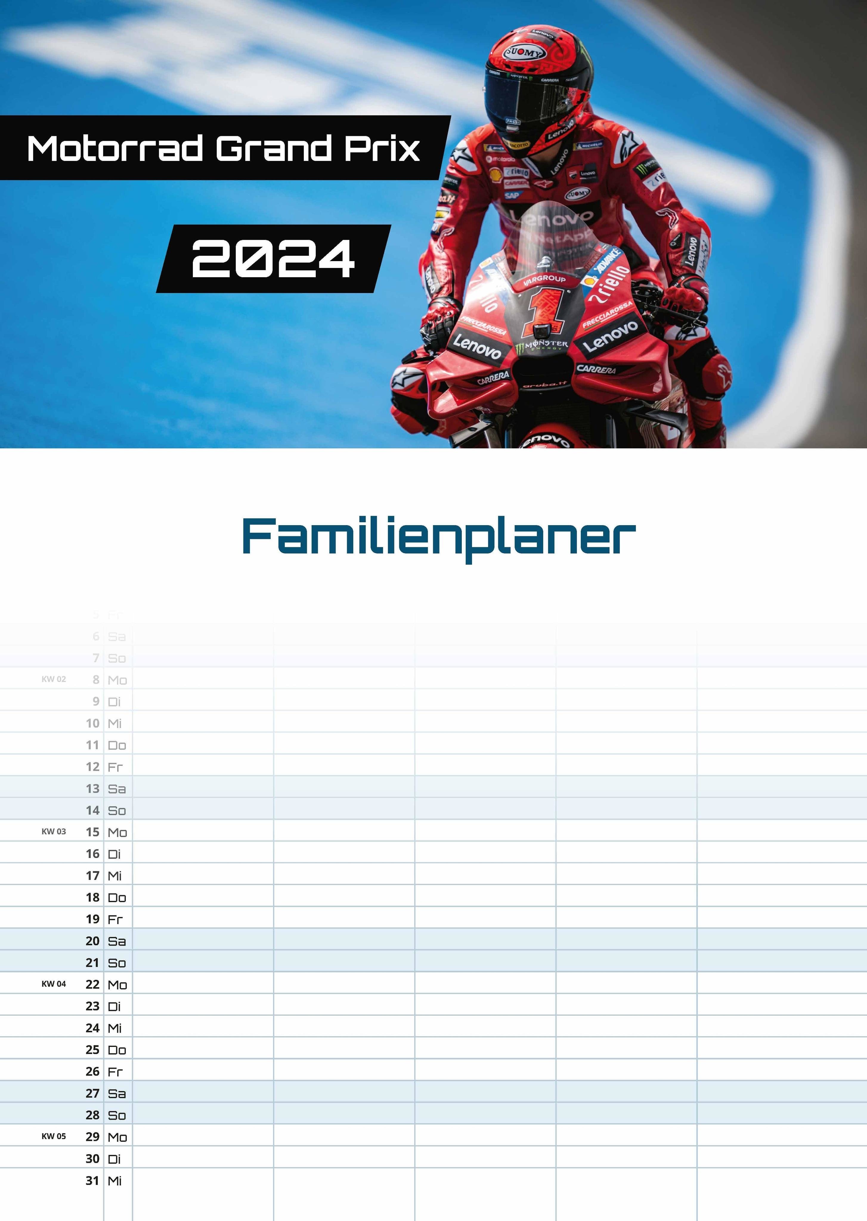 Motorrad Grand Prix 2024 - Kalender | MotoGP DIN A3 (Familien-/Terminplaner) (německy)