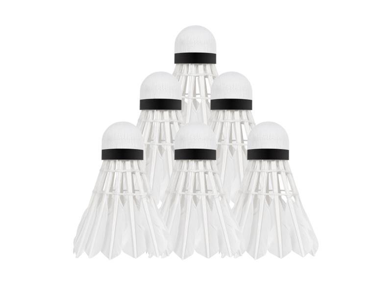 Míčky na badminton z husího peří.Technické parametry:- Materiál: Husí peří třídy 2/3- Délka peří: 61 mm- Barva: Bílá- Materiál hlavy: Korek- Průměr koše: 60 mm- Počet peří: 6 prečítať celé
