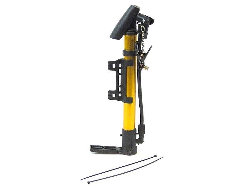 pompka rowerowa, metalowa, wys.33cm, z podkładką pod stopę, ruchomy wężyk, klips i uchwyt mocujący; 42x10cm PPB prečítať celé