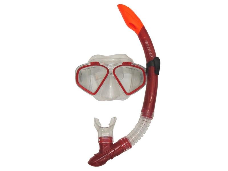 Potápěčská sada BROTHER pro dospělé - brýle s tvrzeným sklem, šnorchl s krytkou a výfukem.Speciální přilnavý materiál brýlí zaručuje velmi dobrou těsnost brýlí. Krytka na šnorchlu zabraňuje vdechnutí vody při plavbě na hladině. K dispozici v barvě ČERVENÉ.
