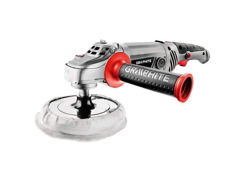 Speciální leštička GRAPHITE (ref. Č. 59G243) s motorem 1300 W, určená pro dokončovací práce u materiálů s různými strukturami a tvrdostí. Průměr lešticího a lešticího kotouče je 180 mm. Nářadí je vybaveno systémem stabilizace rychlosti při změně zatížení, systémem pozvolného rozběhu a aretací vřetena. Bruska-leštička také nabízí plynulé nastavení rychlosti. Rozsah otáček kola je 1000 až 3000 ot / min. Konstrukce nástroje umožňuje bezpečné uložení na rovném povrchu. Nářadí je vybaveno pružným a silným napájecím kabelem v pogumování, dlouhým 3 m, určeným také pro profesionální a průmyslové aplikace pro použití uvnitř i venku. Sada elektrického nářadí obsahuje: dvě lešticí a lešticí kotouče, uzavřenou rukojeť D, přídavnou rukojeť, šestihranný klíč, lešticí podložku a brusný papír. Soulad s evropskými normami je potvrzen certifikátem CE.