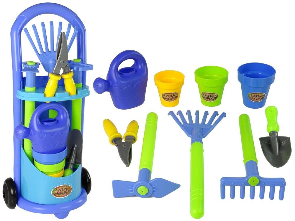 Zestaw Ogrodowy w Wózku Piaskownica Narzędzia Konewka Grabie Doniczka Zestaw ogrodowy zawiera wszystko, co potrzebuje nasz mały ogrodnik! Wózek z rączką to idealne rozwiązanie, wszystkie narzędzia znajdują się razem, dzięki temu maluch zachowa porządek. Drugim plusem jest to, że może zabrać je...