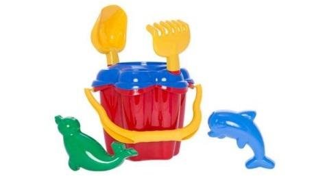 W zestawie znajduje się wiaderko "Kwiatek" z sitkiem, 2 foremki delfinek i foczka, łopatka oraz grabki. Nasz dzieciak na pewno nie będzie się nudził na plaży. Zabawka ta przeznaczona jest dla każdego dziecka i na każdym etapie jego rozwoju. Tworzenie babek z piasku wyzwala w dziecku twórcze myślenie i działanie.
