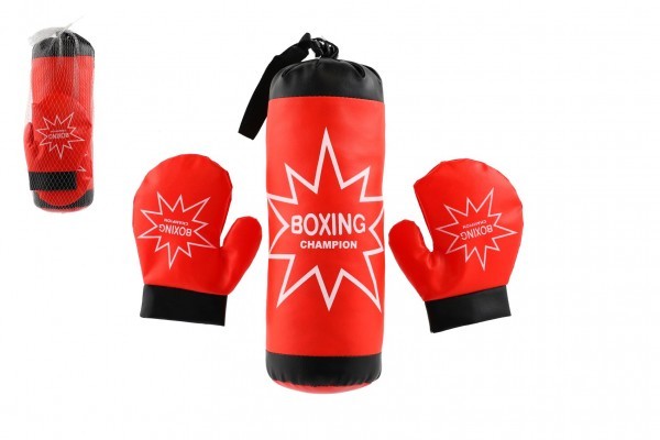 Boxovací pytel + rukavice látka červená/černá v síťce 12x37x15cm