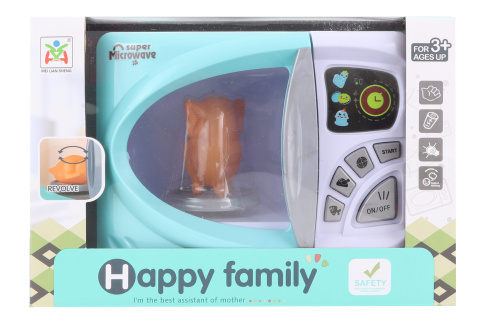 Plastová mikrovlnná trouba na baterie. Po zapnutí se točí a svítí. Součástí je také plastové kuře. Napájení na 2 AA baterie (nejsou součástí). Rozměry balení cca 25 x 17 x 14 cm. Věk 3+ prečítať celé