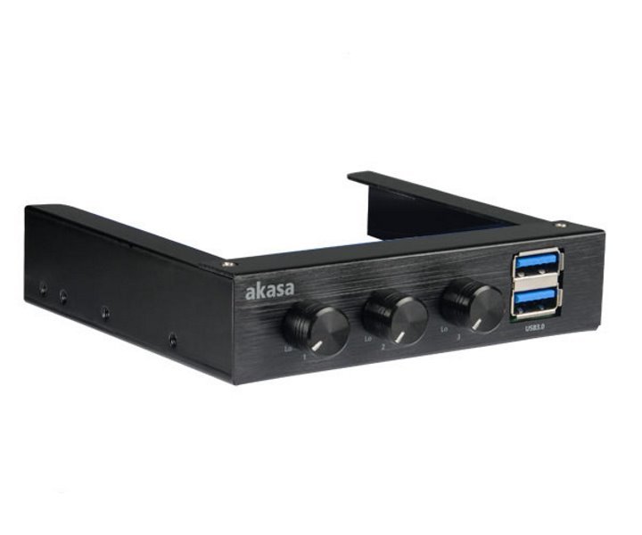 AKASA kontrolní panel do 3,5\" pozice / AK-FC-06U3BK / hliníkový / 2x USB3.0 / 3x FAN kontrola / černý