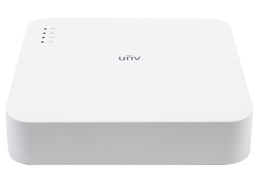 UNV NVR, 4 PoE (Max 54W) kanály, H.265, 1x HDD, vstup 6 Mpix (max 40Mbps),HDMI + VGA Full HD, ONVIF, 2x USB 2.0, audio