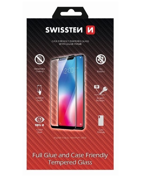 Swissten sklo Full glue, Color Frame, Case Friendly Apple iPhone 14 Pro MAX černé