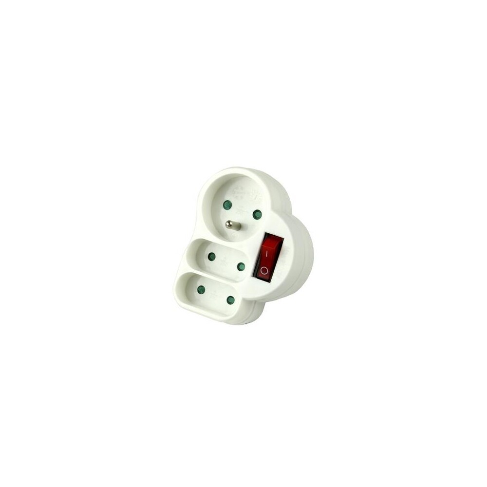 PremiumCord Rozbočovací zásuvka 2× plochá + 1x kulatá s vypínačem 230V, bílá