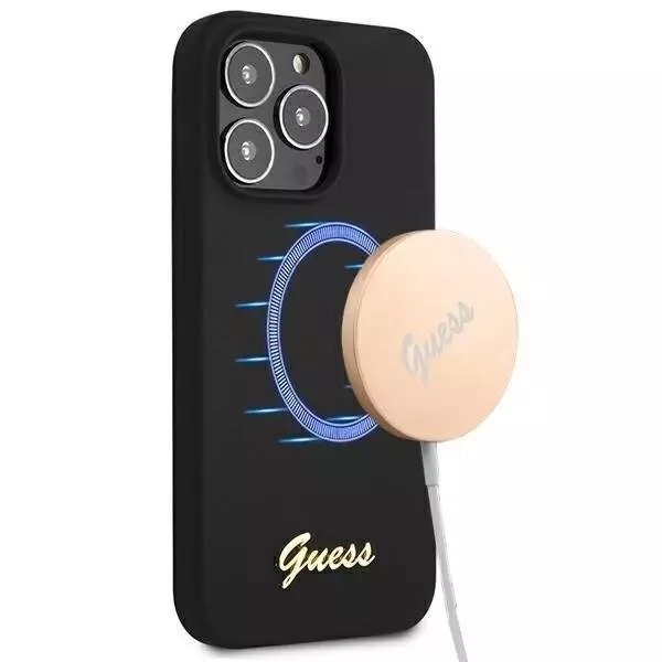 Guess GUHMP13LLSLMGBK iPhone 13 Pro / 13 6,1" černý/černý pevný obal Silikonové zlaté logo Script