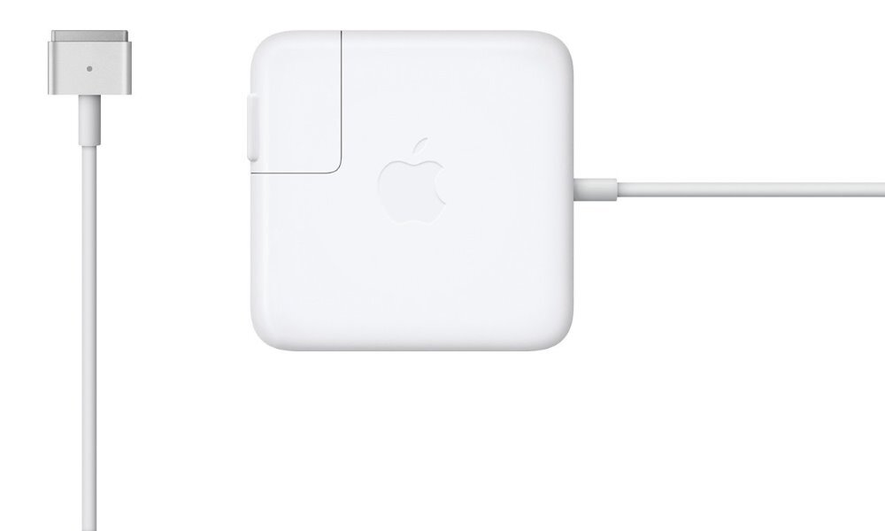 Konektor stejnosměrného proudu u 85 W napájecího adaptéru MagSafe 2 je magnetický, takže když o šňůru někdo zakopne, neškodně se odpojí a MacBook Pro Retina zůstane bezpečně na místě. Také nedochází k postupnému rozedření a opotřebování kabelů. Kromě toho tento magnetický konektor usnadňuje rychlé a bezpečné připojení zástrčky k systému.