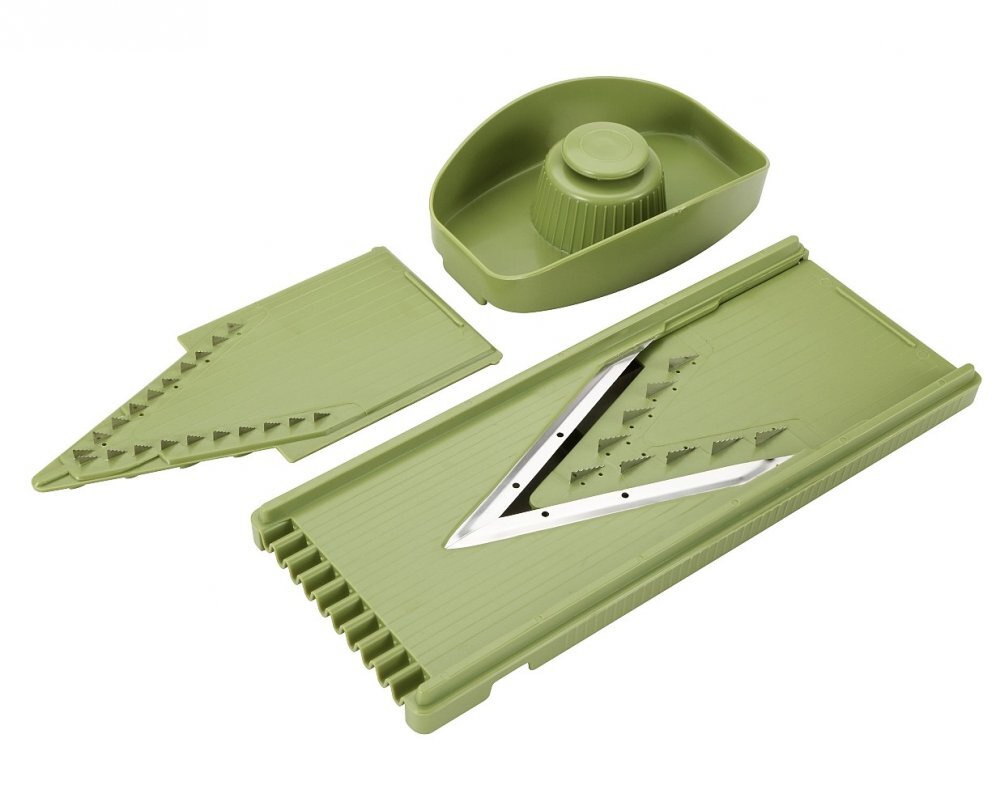 4PC MULTI SLICER SET - PLASTIC- 2PCS REMOVABLE BLADE - 1PC SAFETY HOLDER - 1PC PLASTIC SLICING BOARD - OLIVE prečítať celé