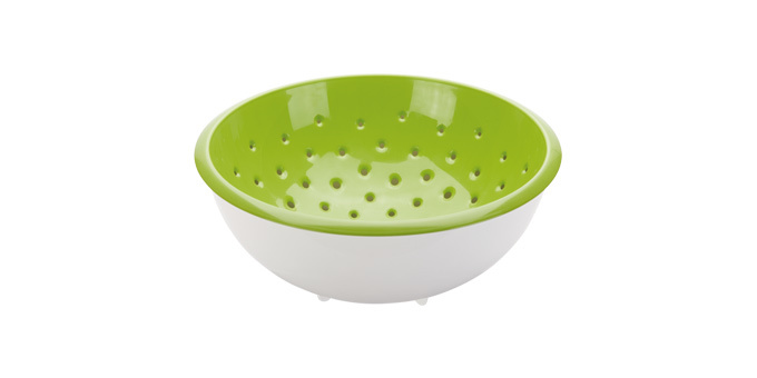 Vynikající pro oplachování ovoce a zeleniny pod tekoucí vodou a pro jejich podávání, zbylá voda z opláchnutých potravin odkape do mísy. Obě nádoby lze používat samostatně, mísu pro přípravu a podávání salátů nebo servírování ovoce, cedník k cezení uvařených těstovin, brambor apod. Vyrobeno z prvotřídního odolného plastu, vhodné do ledničky a do myčky. 3 roky záruka.