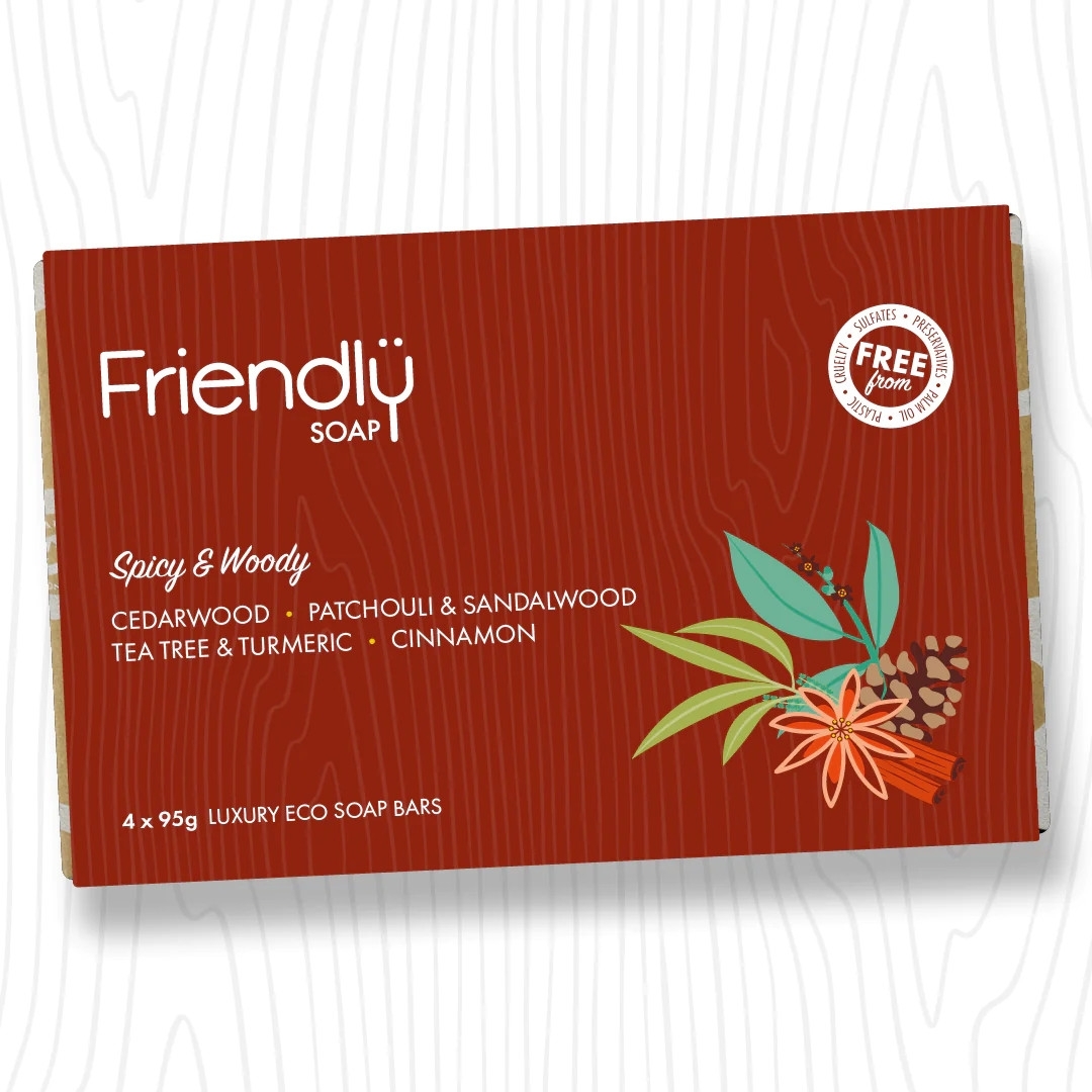 Friendly Soap přírodní mýdlo dárková sada mýdel Spicy and Woody 4x 95g