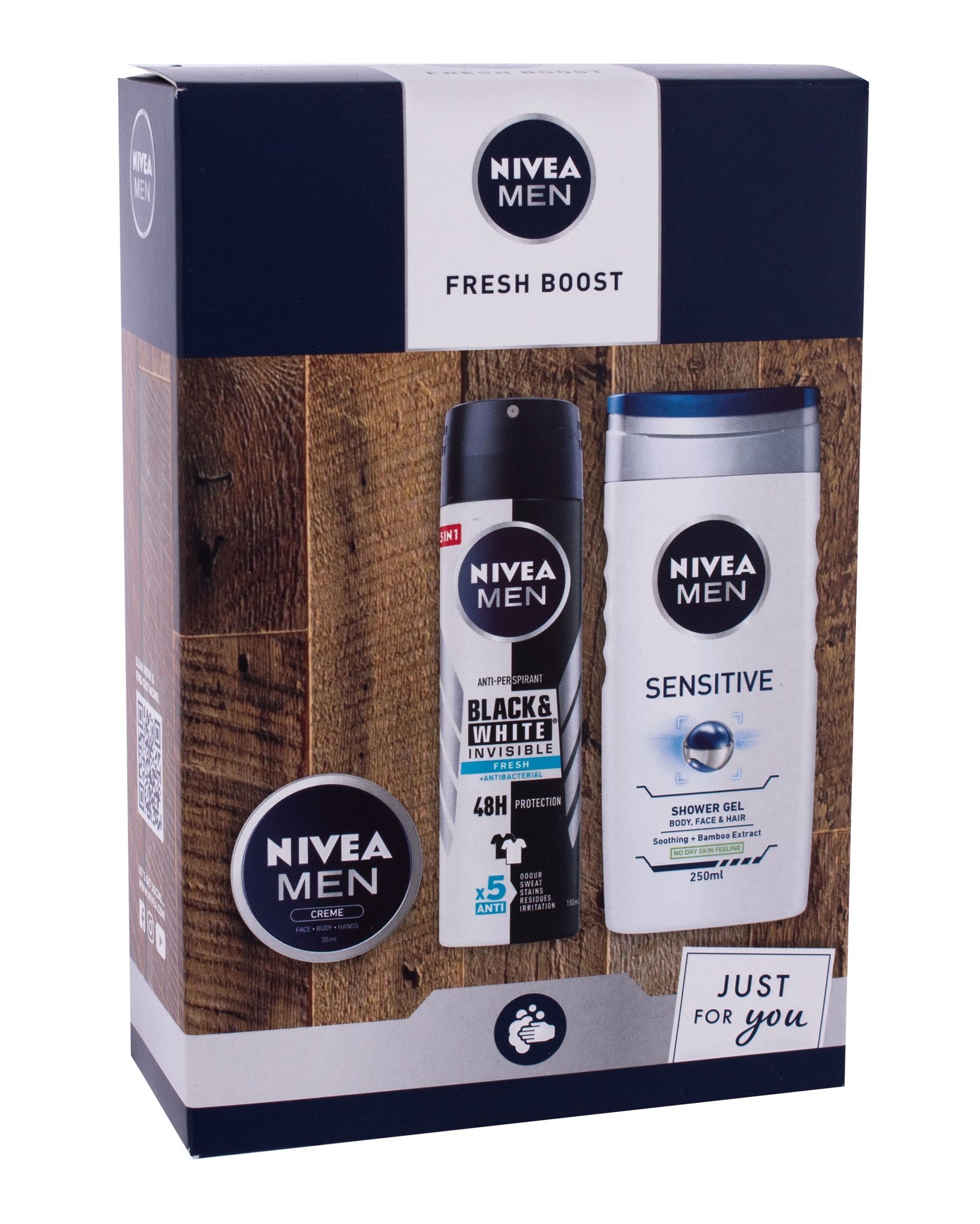 Nivea Men Sensitive sprchový gel Men Sensitive 250 ml + anti-perspirant Men Invisible For Black & White Fresh 150 ml + univerzální krém Men Creme 30 ml