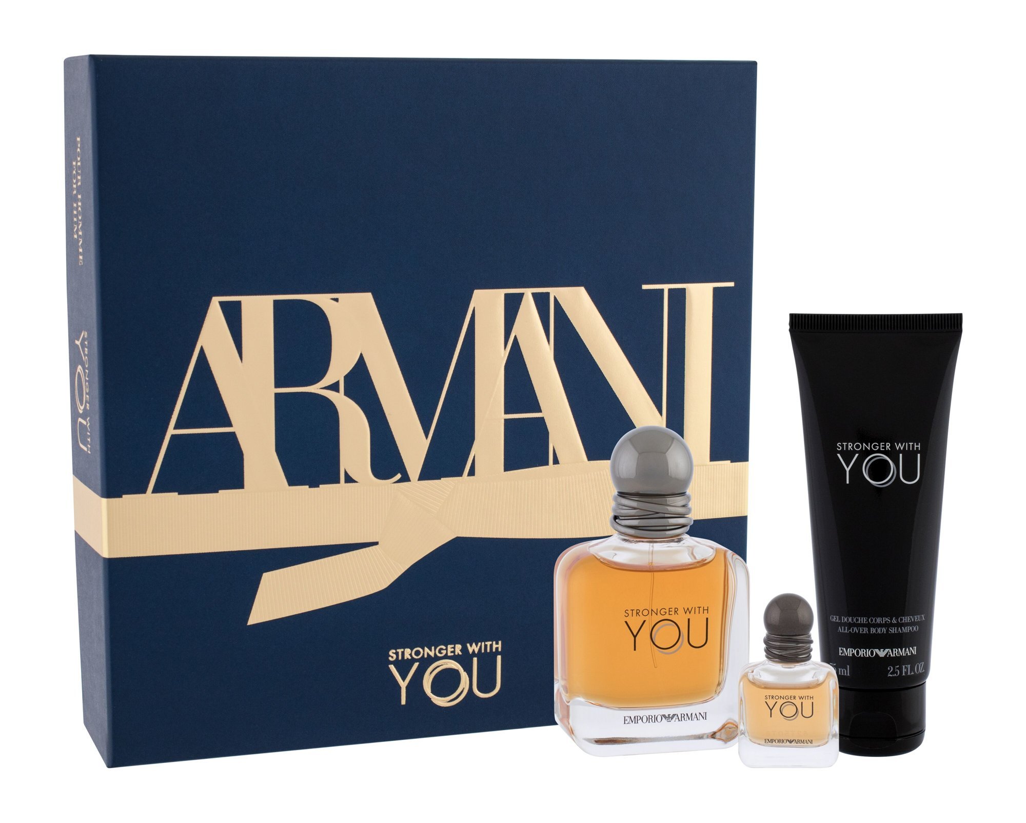 Emporio Armani Stronger With You od značky Giorgio Armani - neodolatelná, svůdná vůně plná radosti a něhy. Pánská toaletní voda Emporio Armani Stronger With You je inspirována přirozenou elegancí. Úvodní tóny nabízejí pikantní tóny koření, kterou jsou doplněny vůní chladivé máty. Spojení šťavnatého ananasu a melounu vytváří dokonalou souhru tónů, která vám dodá energii. Smyslná vůně vanilky, cedru a ambrového dřeva uzavírá tuto originální kompozici.
