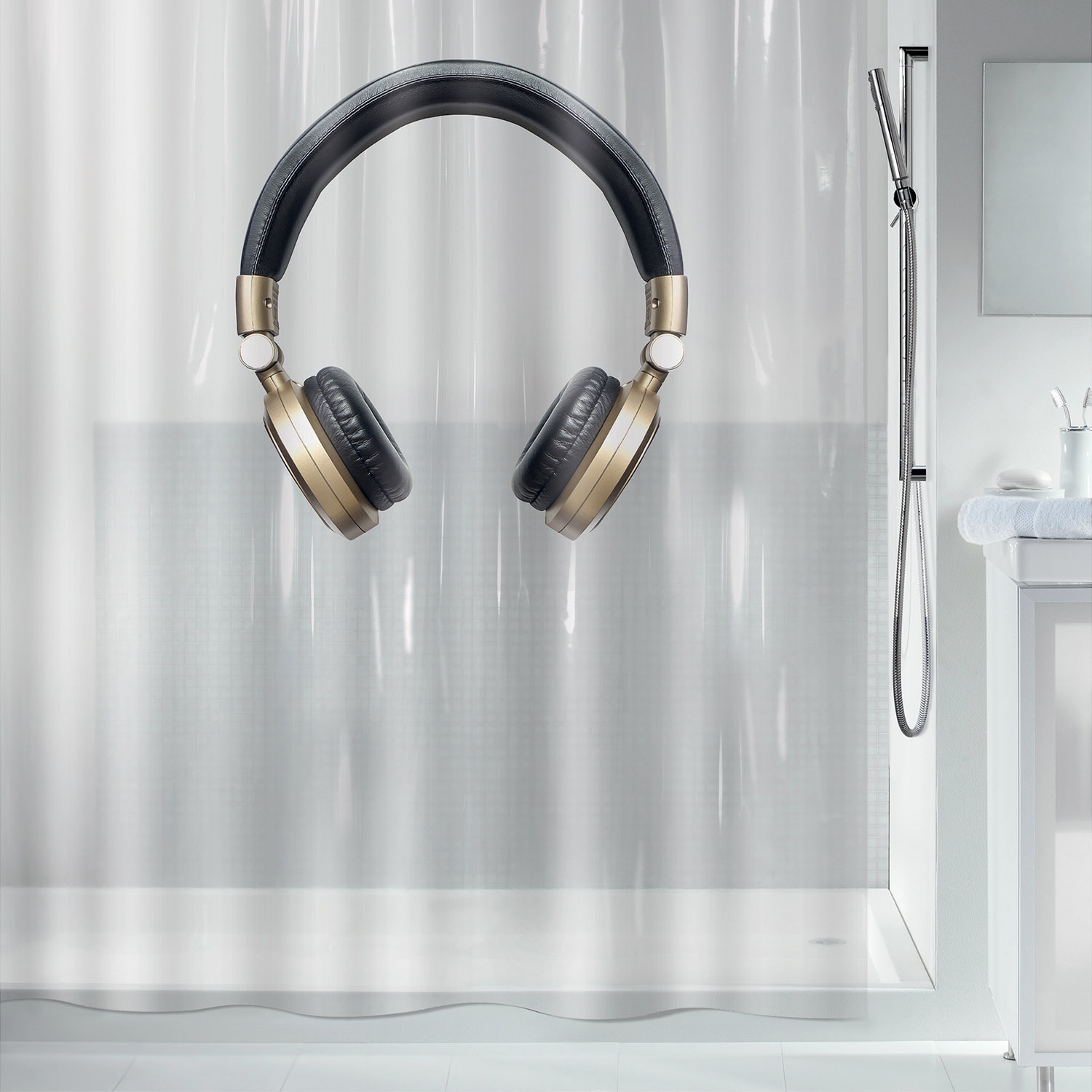 Spirella sprchový závěs HEADPHONE, motiv sluchátka, čirý, 180 x 200 cm, PEVA