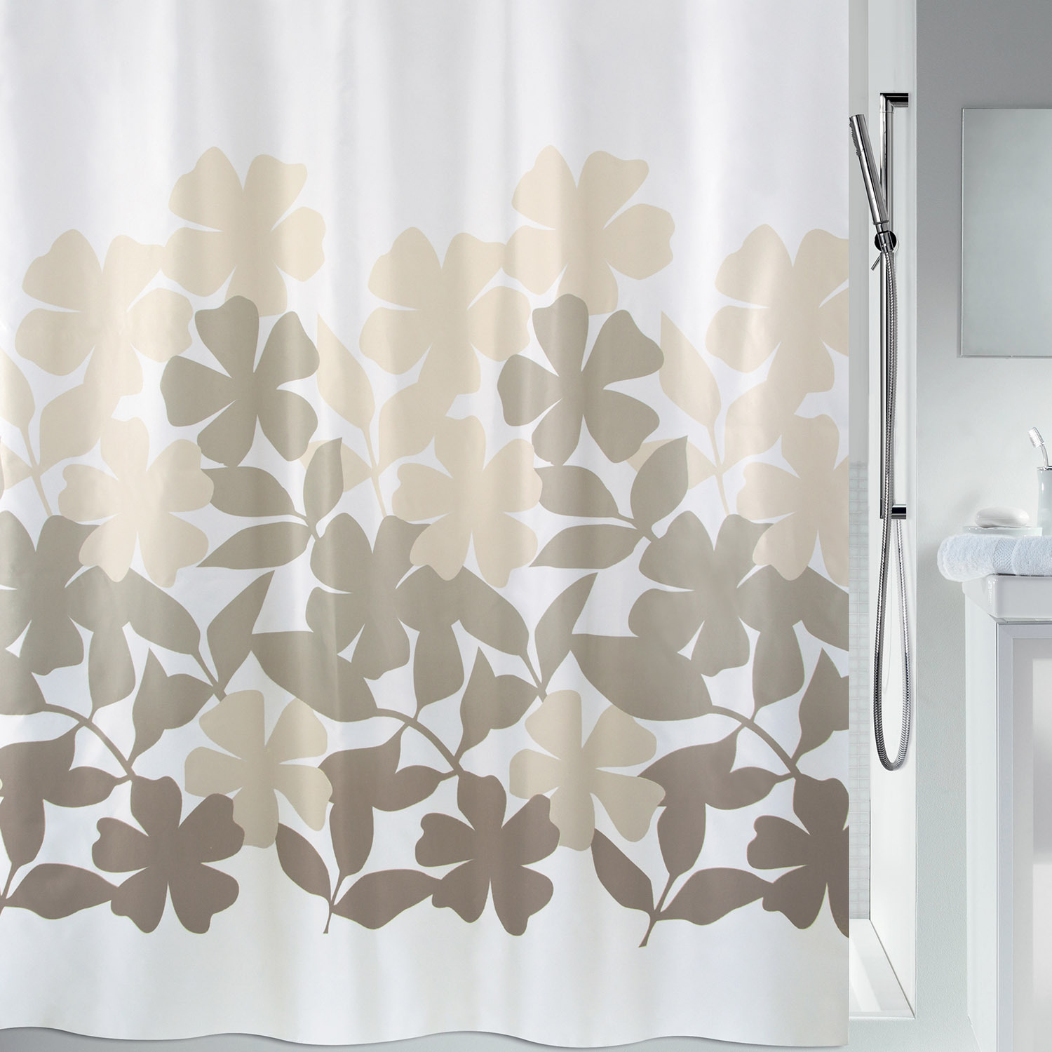 Spirella sprchový závěs FLEURY, motiv květin, bílý, 120 x 200 cm, polyester