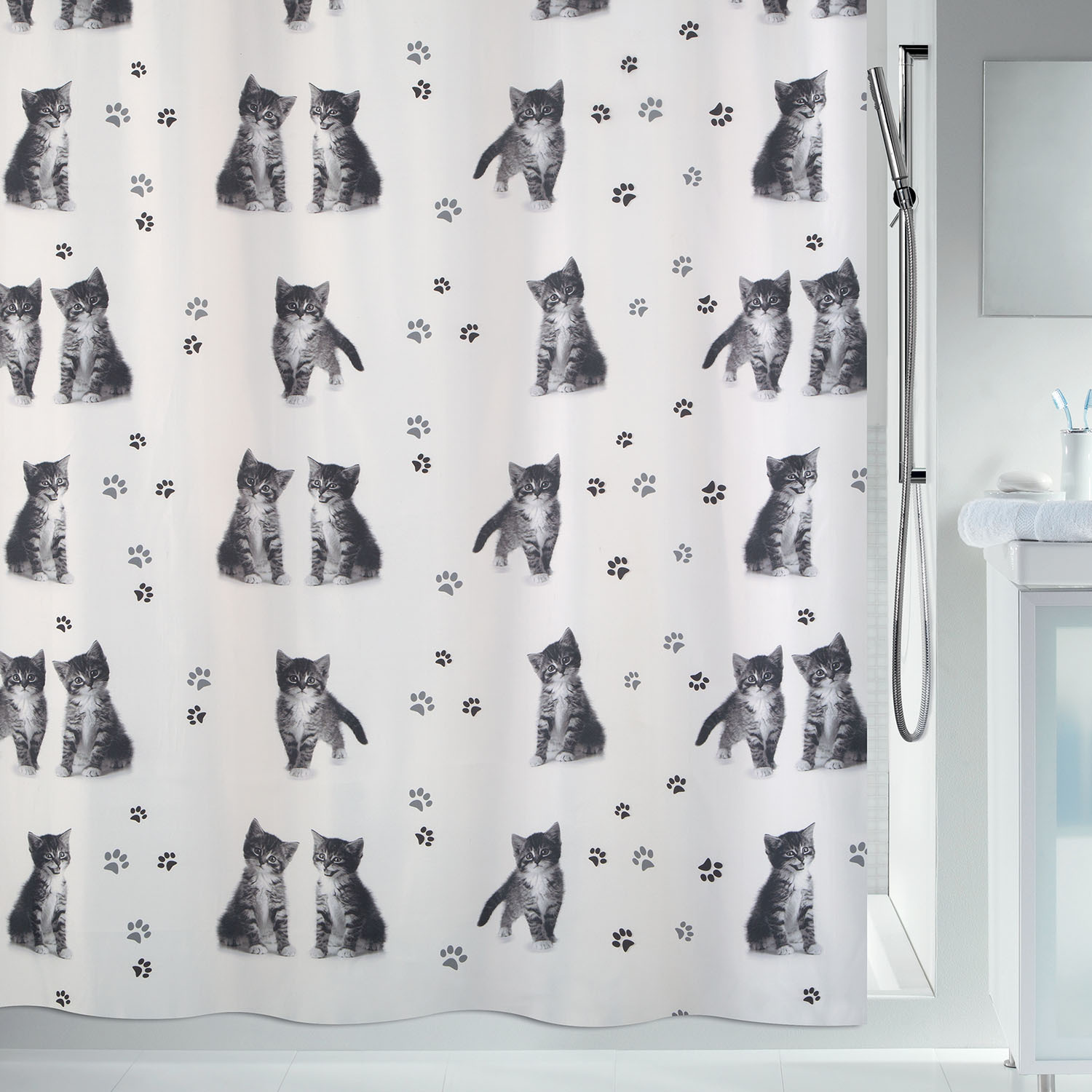 Spirella sprchový závěs KITTY Paw, motiv kočky, bílý, 180 x 200 cm, polyester