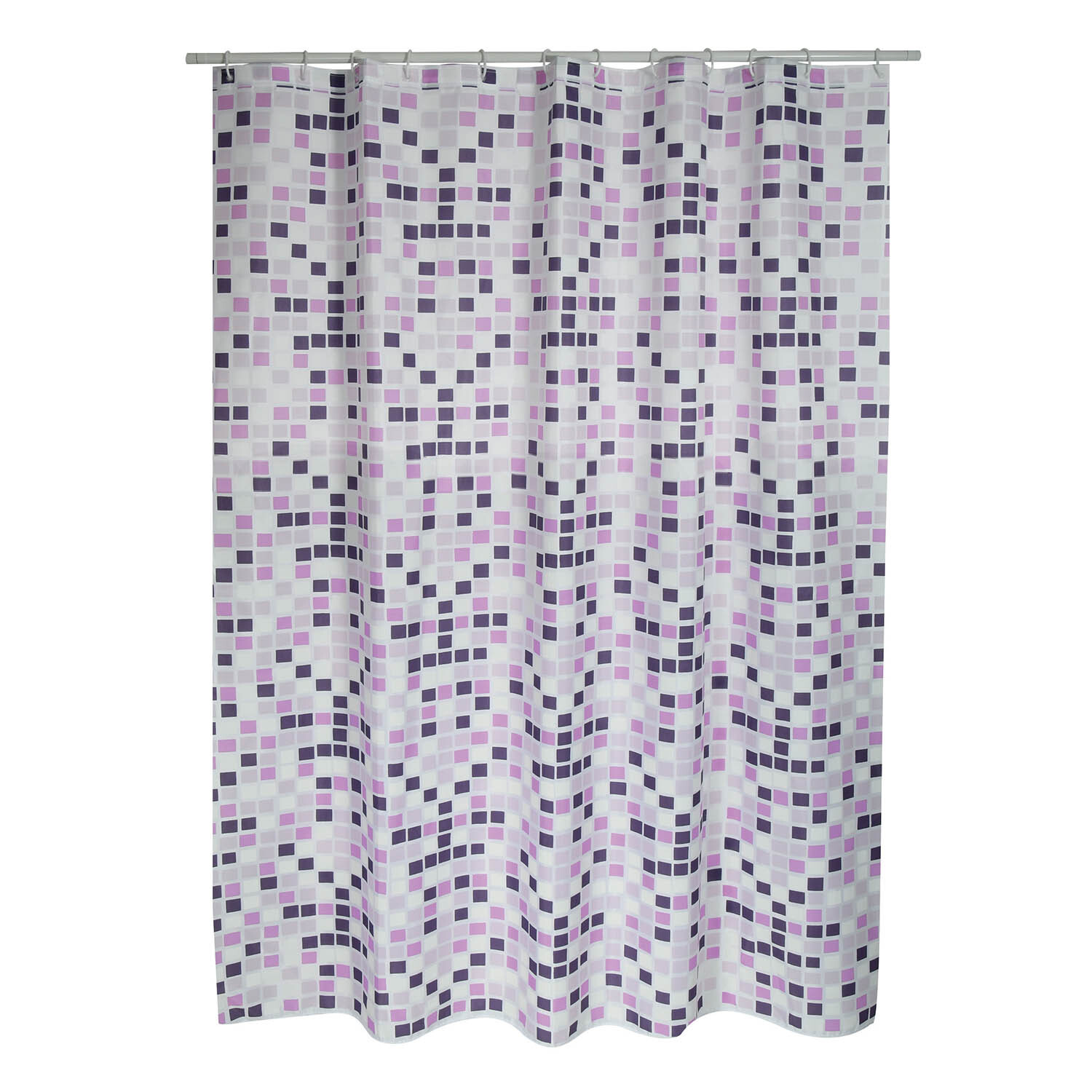 MSV sprchový závěs MOSAIKO, motiv čtverců, bílo-fialový,180 x 200 cm, polyester, s kroužky