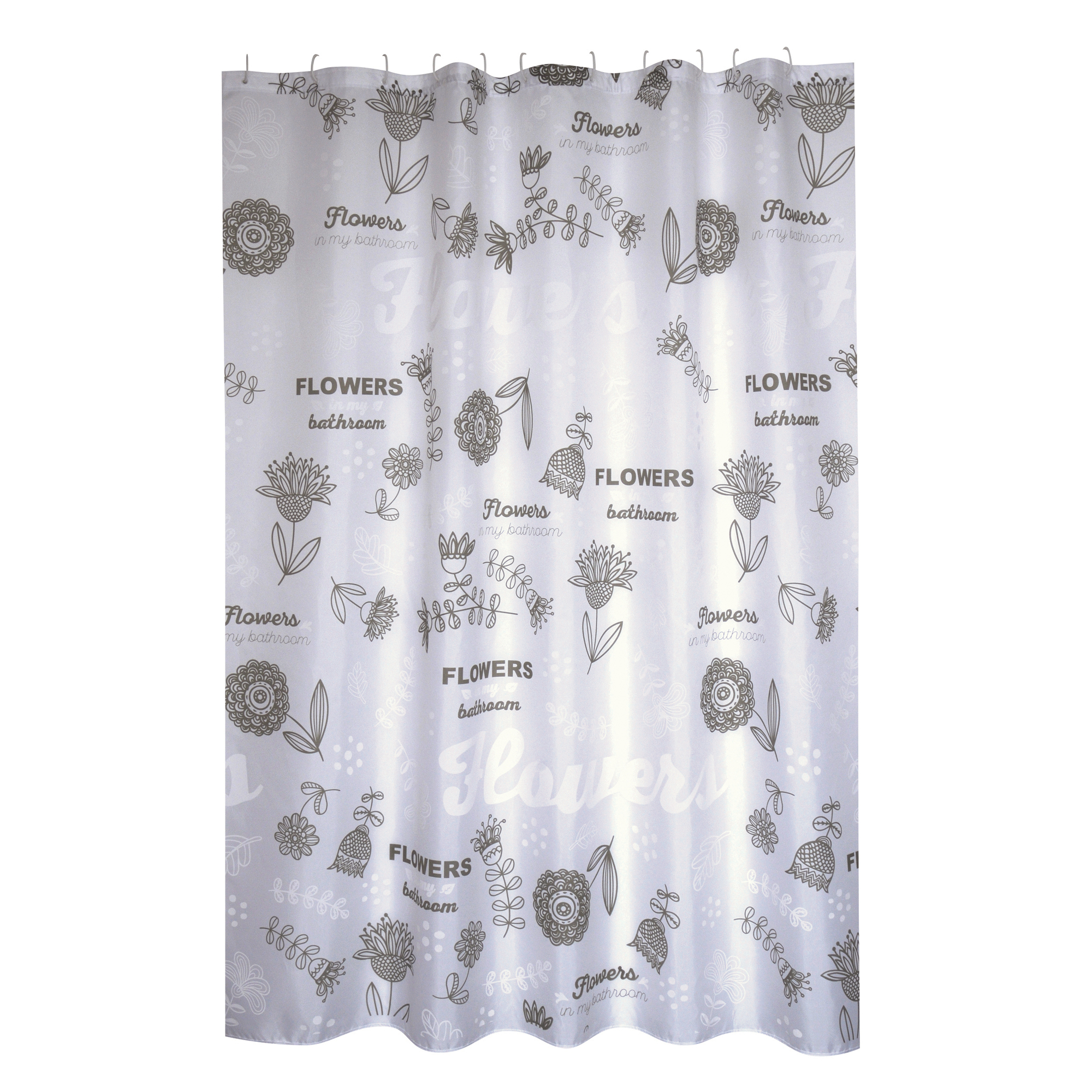MSV sprchový závěs FLOWERS, motiv květin, bílý, 180 x 200 cm, polyester, s kroužky