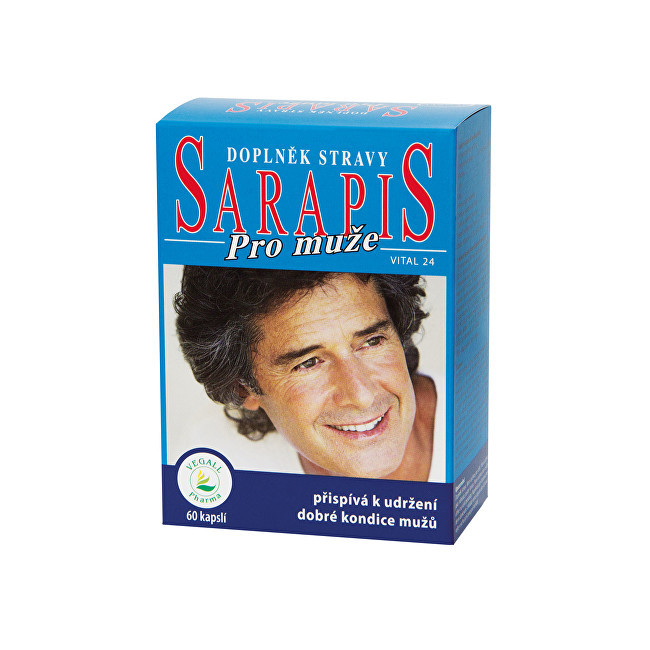SARAPIS pro muže řeší obtíže spojené s nedostatkem testosteronu. Určeno mužům po 40. roce věku. Pro období tzv. mužského přechodu. Balení obsahuje dva druhy kapslí – ranní a večerní o různém složení. Přispívá k hormonální rovnováze a pozitivní náladě, relaxaci, dobrému spánku a antioxidaci. Pomáhá udržovat normální hladinu testosteronu. Obsahuje včelí mateří kašičku, která je považována za elixír mládí. Bez vedlejších účinků i při dlouhodobějším užívání.