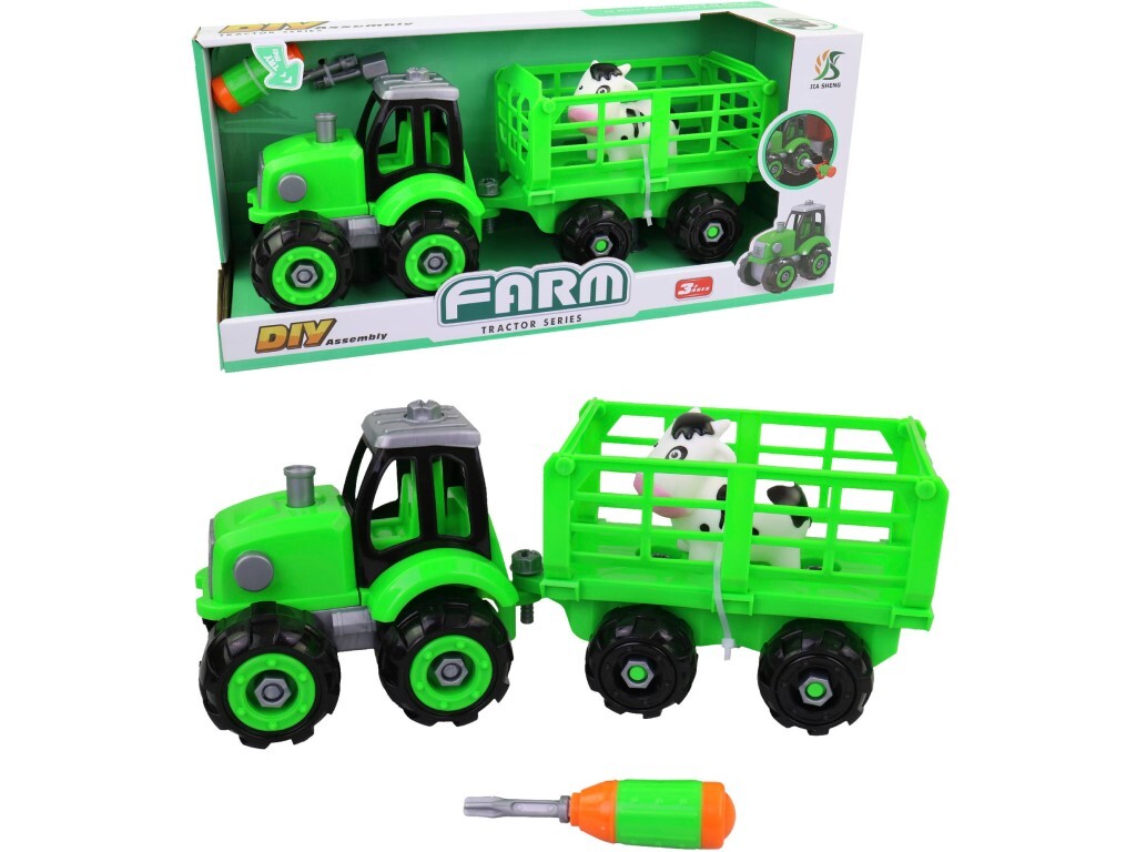 Traktor s vlečkou, šroubovací, 32,5 x 12 x 13 cmHračka je určena pro děti 3+.Rozměr hračky je 32,5x12x13 cm.Materiál hračky je plast.Balení hračky je display box.Produkt je určený pro kluky.Ke zprovoznění produktu jsou potřeba 3 AG13 baterie.Baterie jsou součástí balení.
