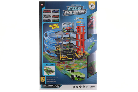 Velká plastová garáž. Balení také obsahuje 6 autíček a látkový koberec. Rozměr koberce 150x120 cm. Rozměry balení 50x78x9 cm. Věk 3+ prečítať celé