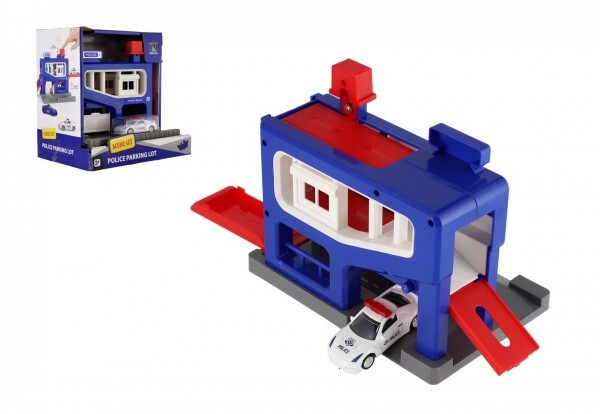 Parkovací garáž + auto policie plast v krabici 20x20x14cm