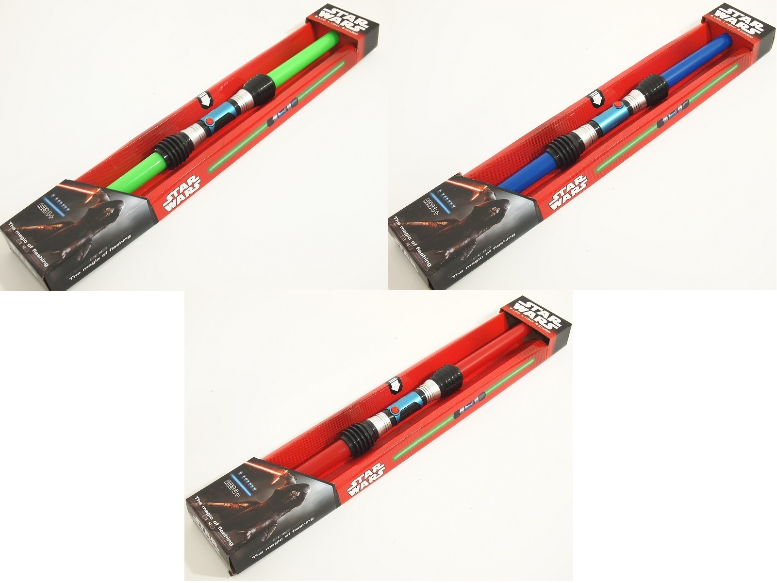 Miecz świetlny dwustronny Star Wars - świeci i wydaje dźwięki po naciśnięciu przycisku.Rozłożony miecz jest długi na ok 115 cm.Dostępny jest w 3 kolorach wybieranych losowo:czerwonymzielonymniebieskim prečítať celé