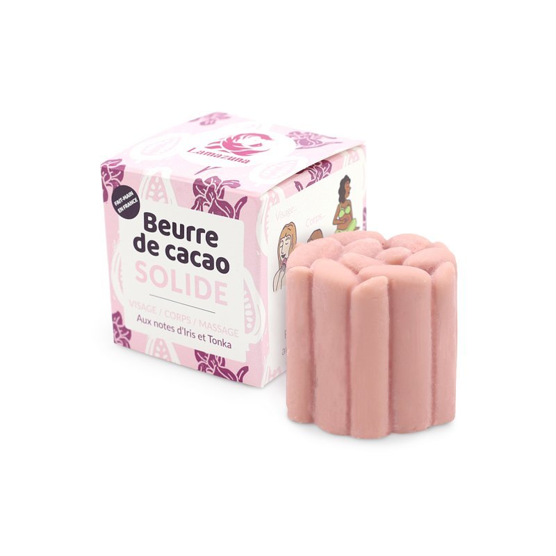 Lamazuna Tuhé kakaové máslo růžové BIO (55 g) - 3 v 1: na obličej, tělo i masáž
