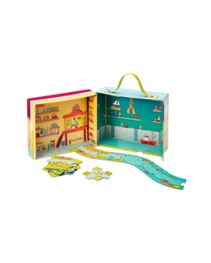 Puzzle v kufříku s dráhou pro autíčka a loďku!